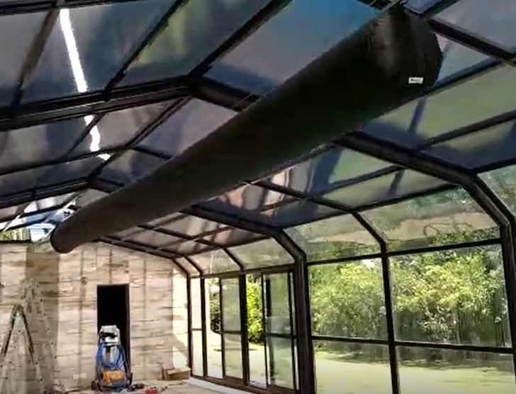 De esta manera el conducto puede desmontarse fácilmente para retraer el techo corredizo en la época estival.