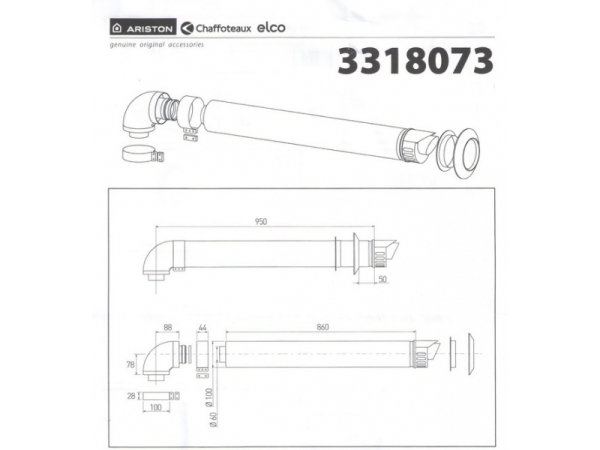 Kit ventilación horizontal ARISTON D60/100 condensaciónKit ventilación horizontal ARISTON D60/100 condensación Kit de ventilación horizontal para salida de humos de caldera condensación.