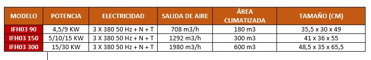 Calefacción por Aire SERIE INDUSTRIAL IFH 30 octubre, 2018 Posted by Gabriel Esponda 18 Sep IFH03 300 IFH03 150 IFH03 90 REGULADOR DE POTENCIA REGULADOR DE TEMPERATURA TOMA TRIFÁSICA MOD 300 TOMA TRIFÁSICA MOD 90